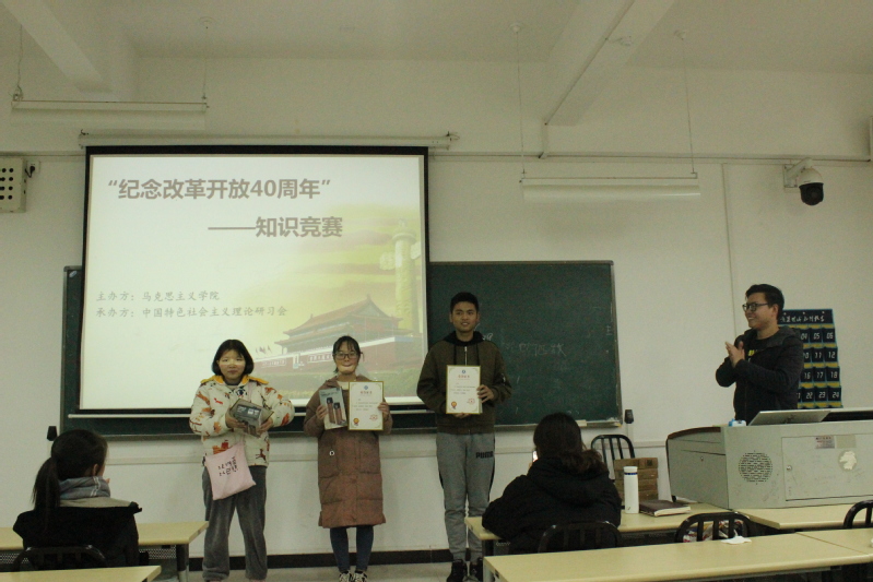 12月10日中午12:30,在北4-208教室,各学院特研会分会推荐的参赛选手们拿起手机扫描答题二维码,争分夺秒开始答题。竞赛题由单选题和多选题组成,涵盖改革开放40周年、党的十九大、习近平总书记系列重要讲话精神等内容,让同学们了解到更多改革开放相关的知识,认识到改革开放以来国家和社会的巨大改变,充分理解改革开放四十年来中国所取得的举世瞩目的成就,从而转化为努力学习、勇于担当社会责任的积极行动,创造和传播正能量。这次活动意义深远,参赛的同学也受益良多。机电工程与汽车服务学院的王崇等3名同学获得一等奖,竞赛还决出了二等奖、三等奖和优秀奖,获奖同学被授予荣誉证书和精美奖品。