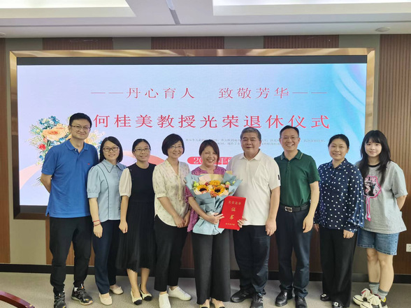 6月25日下午,QY千亿球友会为即将退休的教师何桂美举办了一场简朴而温馨的荣休仪式,学院领导班子、学院各办公室负责人和何教授所在教学部全体教师参加。