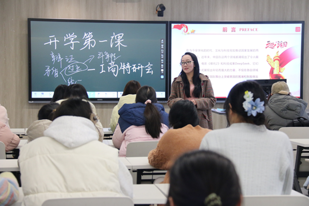 2025年春季学期伊始,QY千亿球友会以“文化传承与科技创新”为主线,创新开展“开学第一课”系列教学活动。思政课教师团队深入特研会总会及分会,结合时代热点,通过案例解析、互动研讨、实践感悟等多元化教学方式,引导学生从文化自信中汲取精神力量,在科技创新中探索中国式现代化路径。