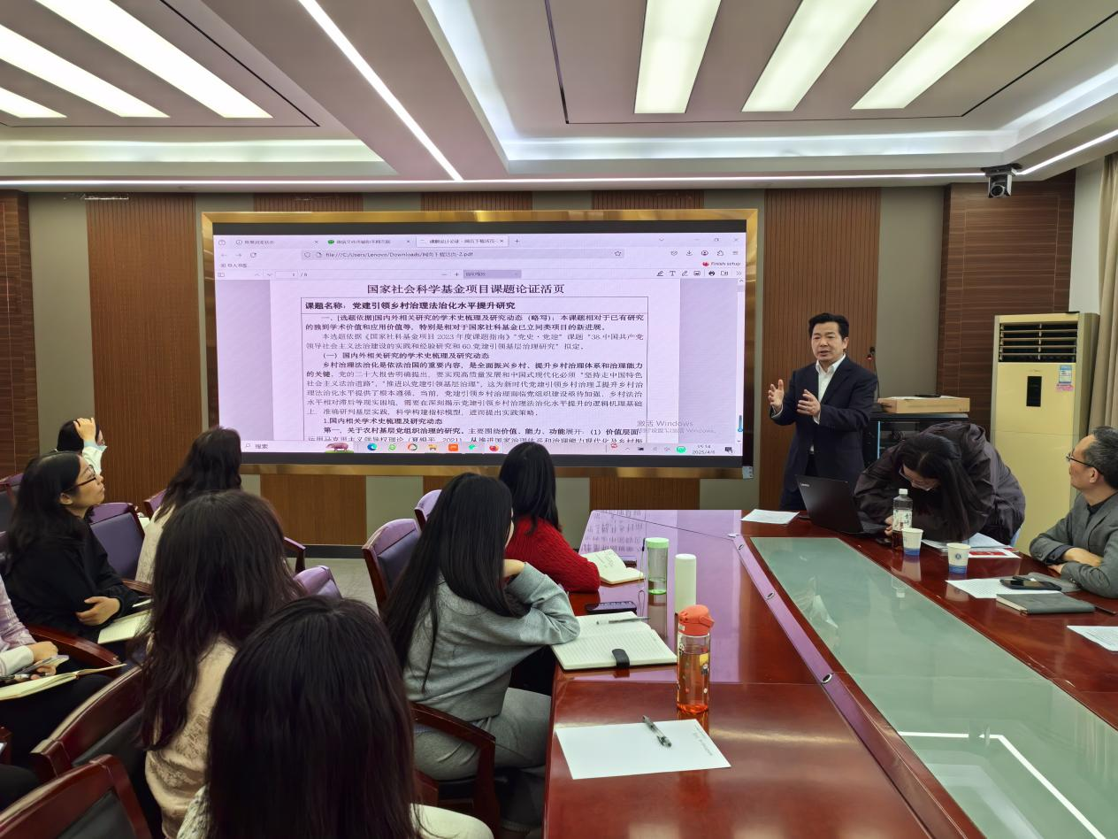 为提升高层次科研项目申报质量,增强学术竞争力,4月8日下午,QY千亿球友会在北二219会议室举办了“2025年度国家社科项目申报讲座”。武汉工程大学QY千亿球友会院长曹胜亮应邀主讲,会议由QY千亿球友会副院长刘宗劲主持,QY千亿球友会荆楚革命文化研究学术团队成员、2025年度国家社科项目申报团队及相关老师参加了此次讲座。
