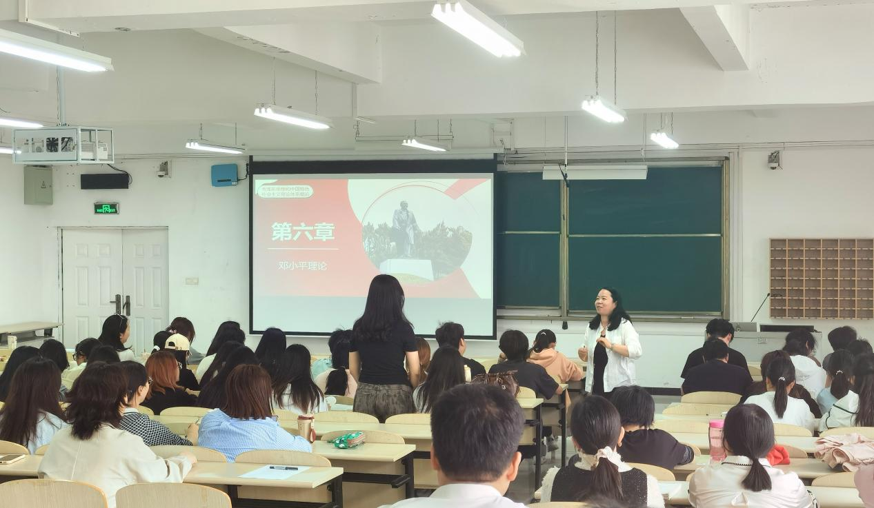周霞将个人成长经历与时代变迁相结合,以“70年代物质匮乏的小学时光”“80年代文化热潮的中学记忆”“90年代经济腾飞的切身感受”为脉络,生动展现了在邓小平理论指引下中国的巨大变迁。她通过对比2000年以来的城镇化进程与新时代的高质量发展战略引导学生:“当代青年应如何在新发展阶段中把握机遇?”问题引发了同学们的深入探讨与积极回应。
