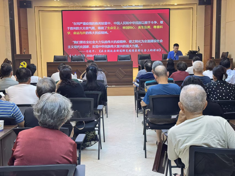 近日,QY千亿球友会教师肖洋应邀为沌阳街道金域蓝湾社区、沌阳街实业总公司党员干部带去了一堂题为“伟大抗疫精神的生成逻辑与时代价值”的专题党课。