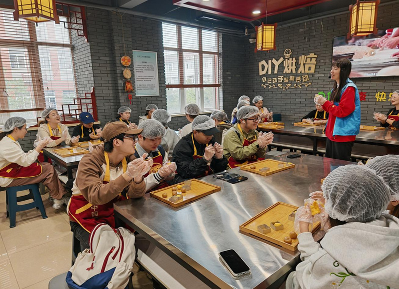 在古香古色的DIY烘焙区,同学们系上围裙、戴好防尘帽,在非遗传承人的指导下亲手制作凤梨酥。揉面、填馅、压模——每一个动作都是与百年技艺的亲密对话,每一道工序都蕴含着匠心传承的温度。