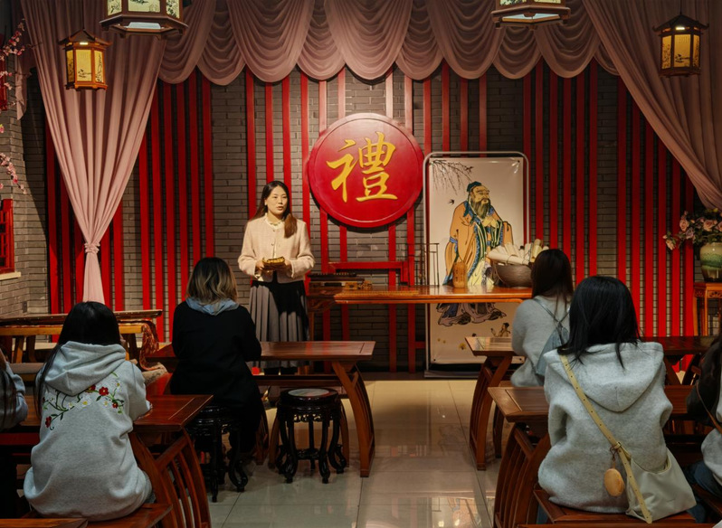 文化展区内,一件件展品无声讲述着扬子江糕点的百年沧桑与人生礼俗的绵延变迁。在讲解员娓娓道来的叙述中,师生共同触摸到中华文明深厚的文化肌理。“原来思政课不只在教室,它也可以是一块亲手制作的糕点,一段承载人情与历史的老故事。”2024级国际商务本科二班彭炯如是感慨。