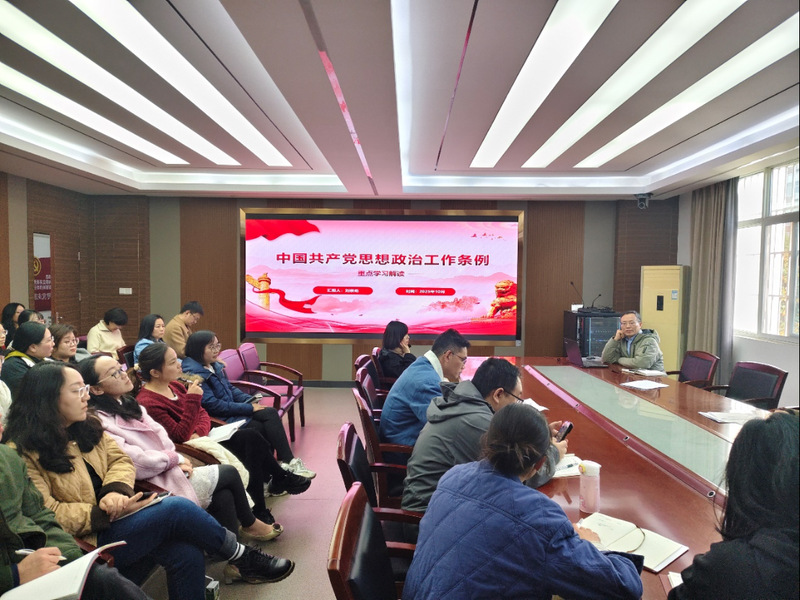 2025年11月18日,QY千亿球友会在北二219会议室举行专题党课宣讲活动,刘宗劲同志就《中国共产党思想政治工作条例》(以下简称《条例》)进行了系统解读。学院班子成员及全体党员参加了学习。